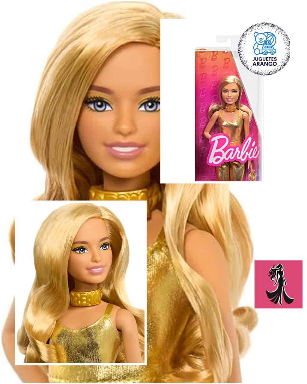 ✨👗 Barbie Muñeca Look Dorado con Accesorios