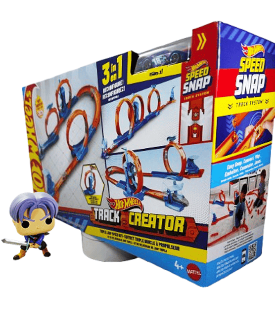 El Set de Pistas Hot Wheels Triple Bucle Track Creator es un emocionante circuito diseñado para crear carreras llenas de velocidad, loops y acrobacias. Este set incluye un sistema de pistas que permite realizar tres loops consecutivos, desafiando a los autos a mantener la velocidad para completar el recorrido completo sin detenerse.