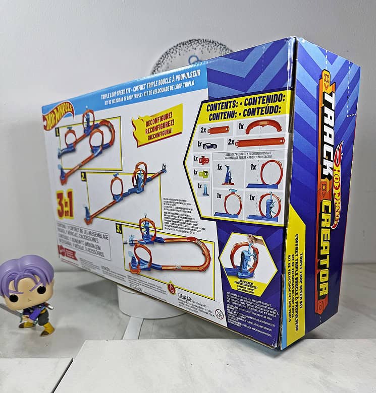 El Set de Pistas Hot Wheels Triple Bucle Track Creator permite crear circuitos llenos de acción con 3 loops y diferentes configuraciones de pista.