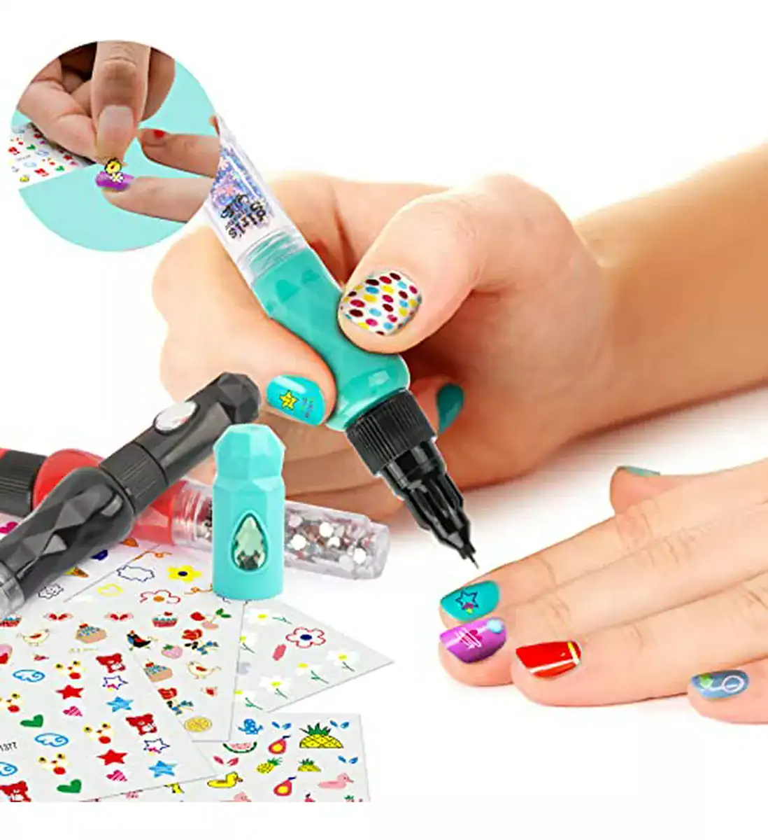 Diversión, color y creatividad en un solo set. Ideal para que las niñas diseñen y decoren sus uñas de forma fácil y divertida.